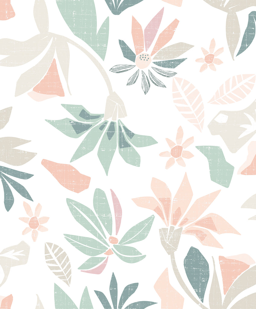 This wallpaper features a block-style floral design, combining bold, structured patterns with soft botanical elements. The geometric layout adds a modern, graphic feel, creating a striking yet balanced look.